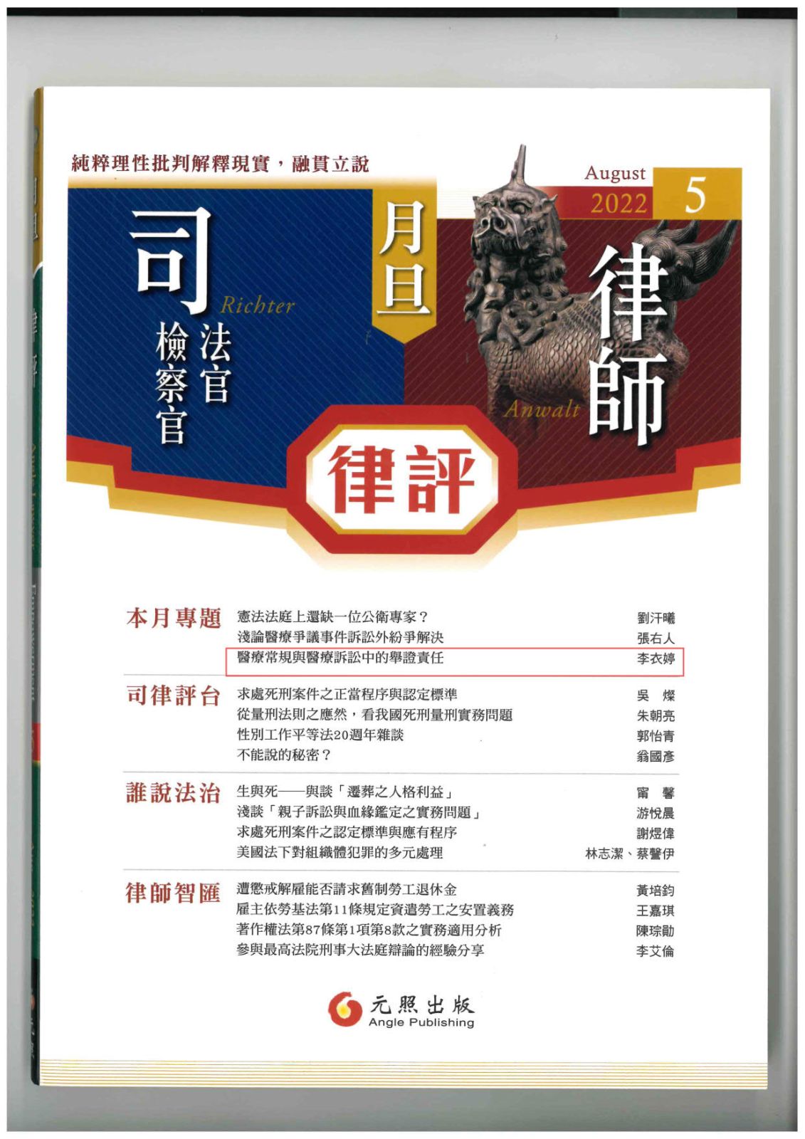 【李律師法學專論—醫療常規與醫療訴訟中的舉證責任】