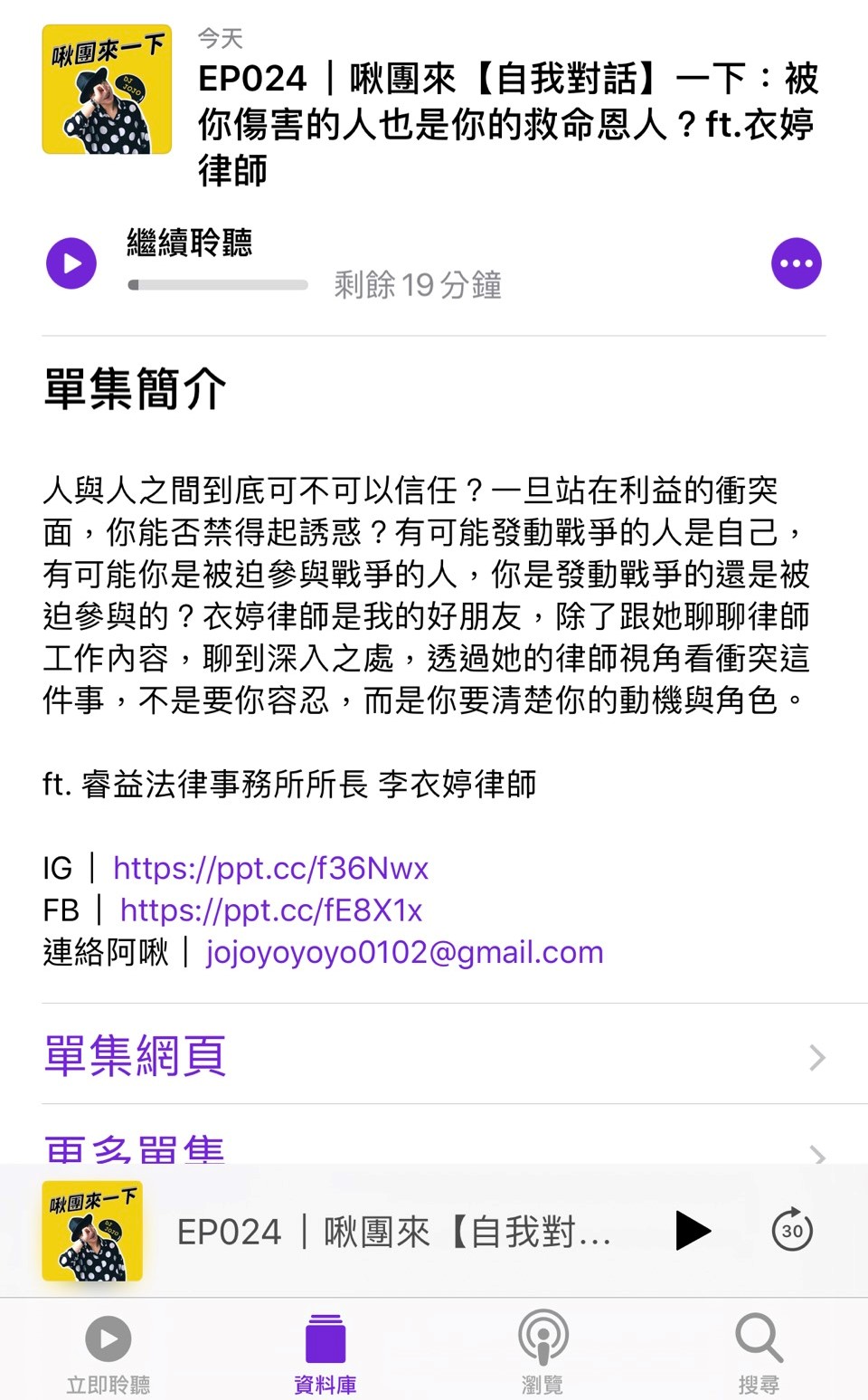 聆聽網址第24集:EP024|【自我對話】被你傷害的人也是你的救命恩人?ft.衣婷律師